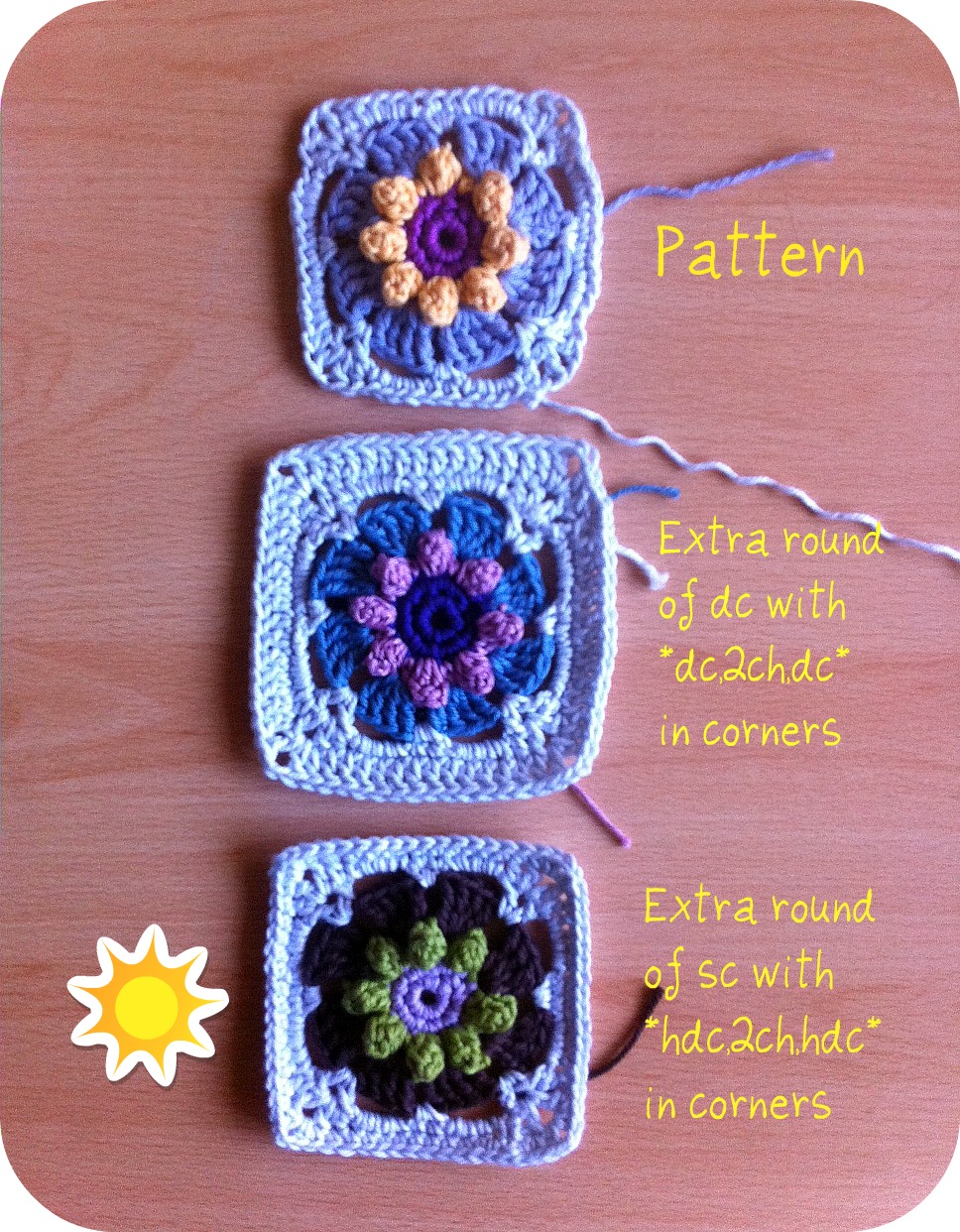 The DC round looked a bit bulky and when laid out together all those DC borders were just a tad too much. So I unpicked all 15 squares and replaced the DC with a round of SC.