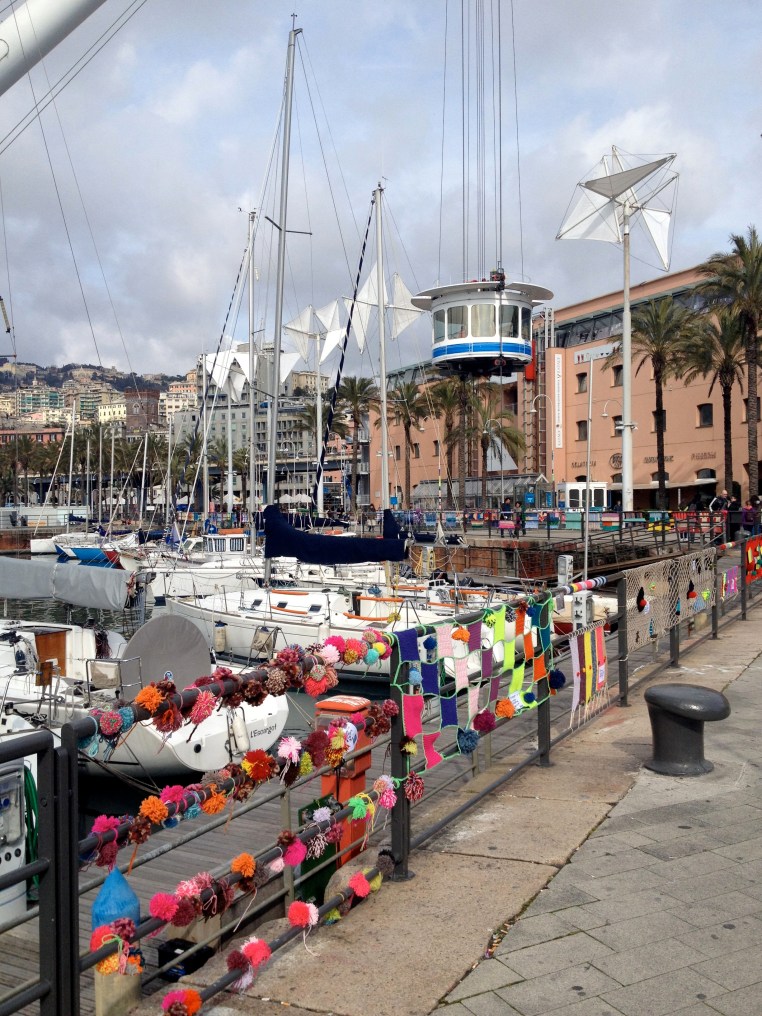 Intrecci Urbani Genoa yarnbomb – Railings and Benches