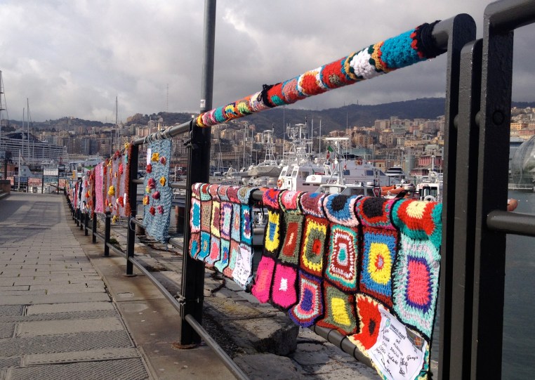 Intrecci Urbani Genoa yarnbomb – Railings and Benches