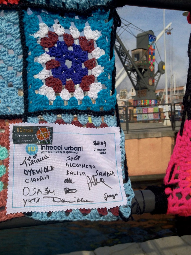 Intrecci Urbani Genoa yarnbomb – Railings and Benches 26 Tuesday Mar 2013 Original size at 2448 × 3264 ≈ Leave a comment Granny squares, harbour crane Share this: Click to share on X (Opens in new window) X Click to share on Facebook (Opens in new window) Facebook Click to share on Pinterest (Opens in new window) Pinterest Click to share on Reddit (Opens in new window) Reddit Click to print (Opens in new window) Print Click to email a link to a friend (Opens in new window) Email Like Loading...