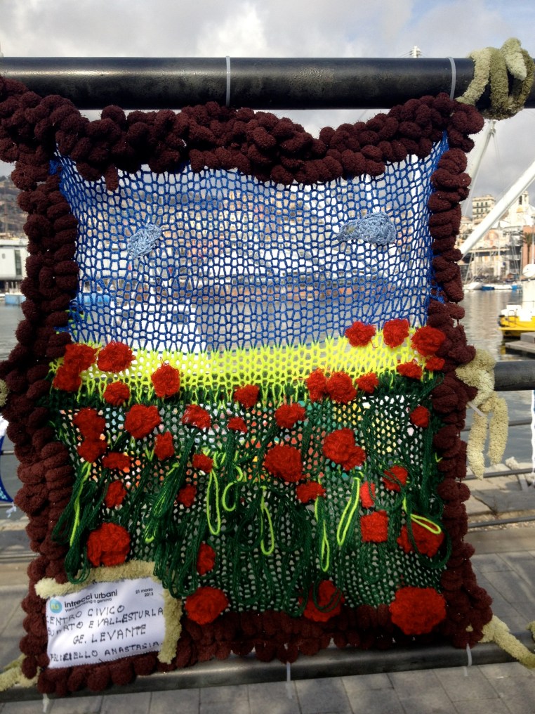 Intrecci Urbani Genoa yarnbomb – Railings and Benches