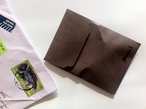 Before I can show you the earrings, I have to take it out of the envelope. The earrings are somewhere inside the plain brown envelope.
